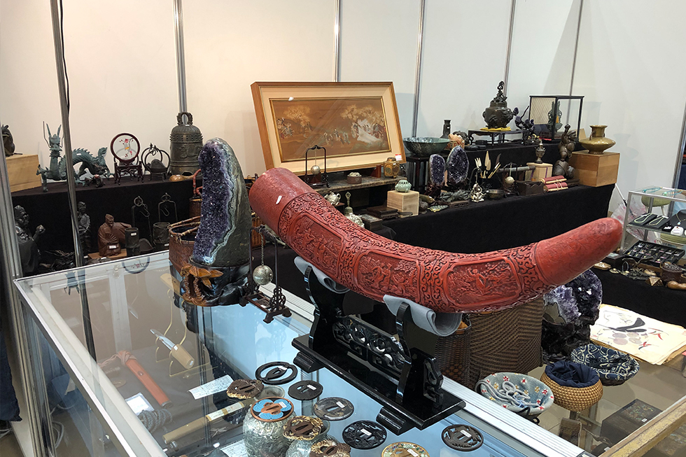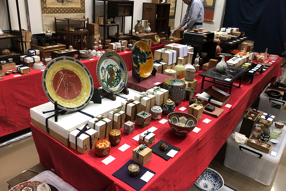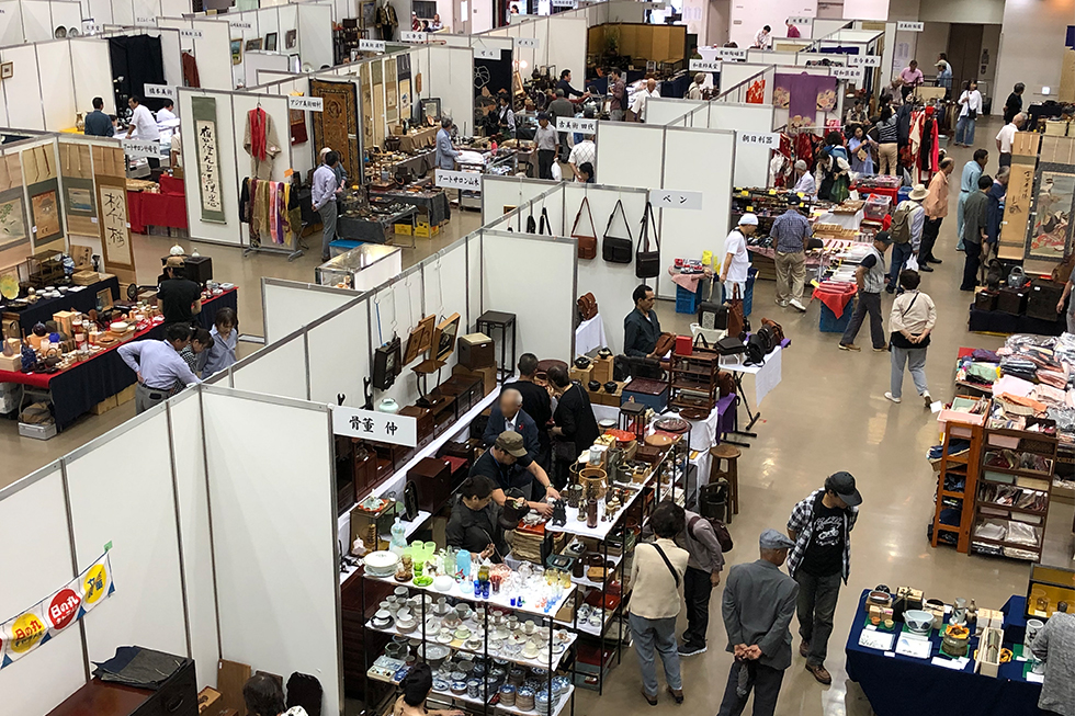 ジャンルも「書画・骨董・茶道具・諸道具・古民具・西洋骨董・中国陶磁・欄間・古着・東アジア民芸品」など、幅広いジャンルで、約30,000点を展示・即売しています。
